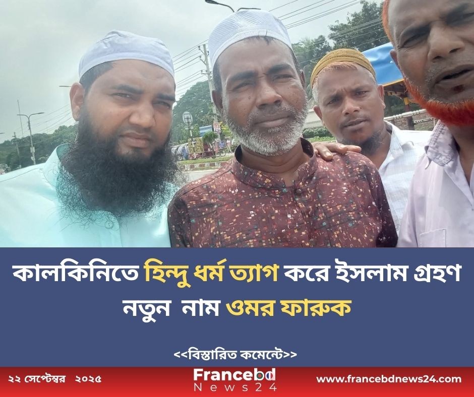 গত রবিবার ২১ সেপ্টেম্বর ২০২৫, স্থানীয় সূত্রে জানা যায়, নবমুসলিম ওমর ফারুক ইসলাম ধর্মের আদর্শে অনুপ্রাণিত হয়ে সম্পূর্ণ স্বেচ্ছায় এ সিদ্ধান্ত গ্রহণ করেছেন।