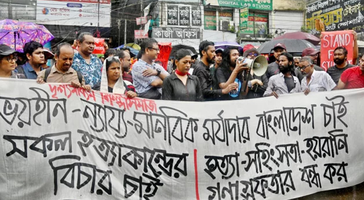 নির্মাতা ও প্রযোজক রেদওয়ান রনি বলেন, ‘ছাত্রদের নির্বিচারে হত্যা করা হয়েছে, তার প্রতিবাদ জানাই। সকল হত্যাকাণ্ডের সুষ্ঠু বিচার হবে, সেটা যেন নিশ্চিত করা হয়। এই দাবি নিয়েই আমরা সবাই রাস্তায় দাঁড়িয়েছি।’